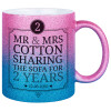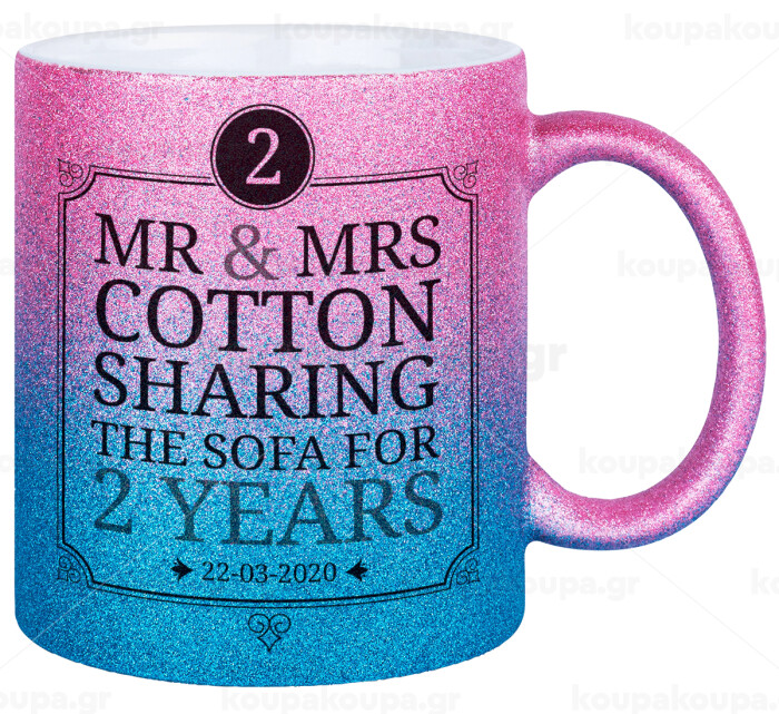 Mr & Mrs Sharing the sofa, Κούπα Χρυσή/Μπλε Glitter, κεραμική, 330ml