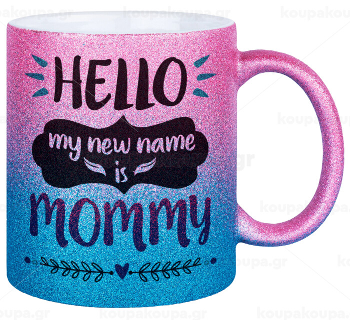 Hello, my new name is Mommy, Κούπα Χρυσή/Μπλε Glitter, κεραμική, 330ml