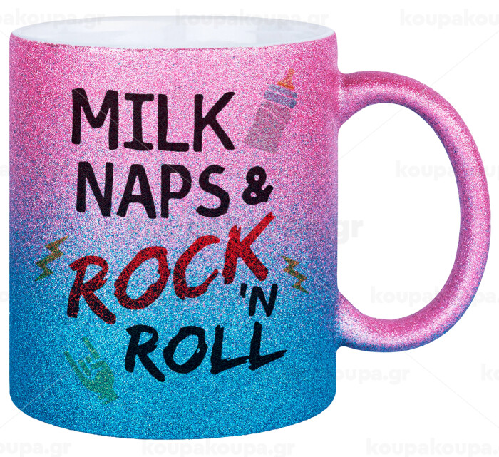 milk naps and Rock n' Roll, Κούπα Χρυσή/Μπλε Glitter, κεραμική, 330ml