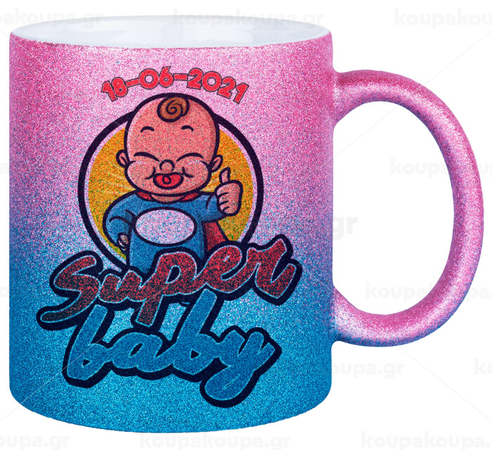 Super baby., Κούπα Χρυσή/Μπλε Glitter, κεραμική, 330ml