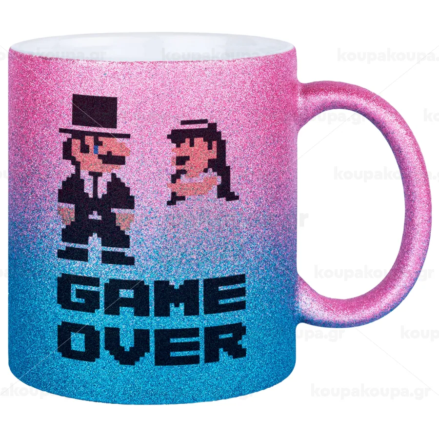 8bit Game Over Couple Wedding, Κούπα Χρυσή/Μπλε Glitter, κεραμική, 330ml