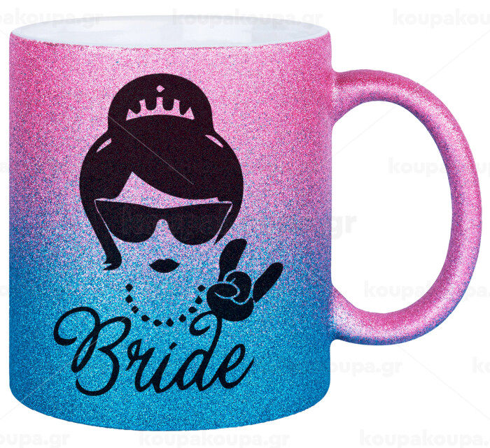 Bride hands, Κούπα Χρυσή/Μπλε Glitter, κεραμική, 330ml
