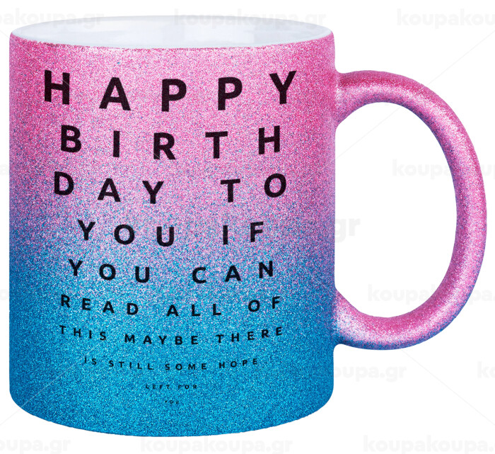 EYE tester happy birthday., Κούπα Χρυσή/Μπλε Glitter, κεραμική, 330ml