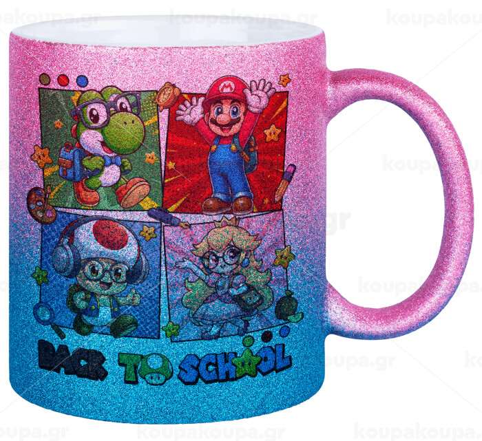 Back to the School Mario & Friends, Κούπα Χρυσή/Μπλε Glitter, κεραμική, 330ml