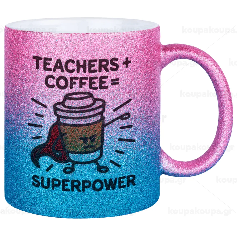 Teacher Coffee Super Power, Κούπα Χρυσή/Μπλε Glitter, κεραμική, 330ml