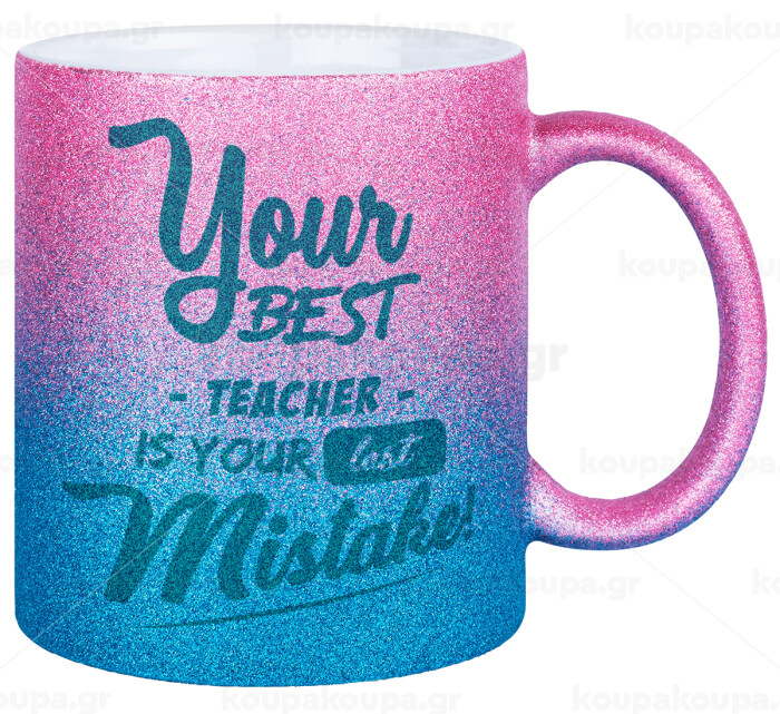 Your best teacher is your last mistake, Κούπα Χρυσή/Μπλε Glitter, κεραμική, 330ml