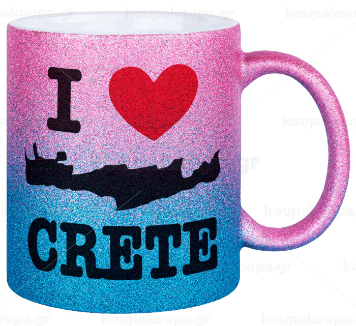 I Love Crete, Κούπα Χρυσή/Μπλε Glitter, κεραμική, 330ml