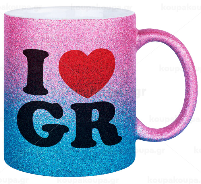 I Love GR, Κούπα Χρυσή/Μπλε Glitter, κεραμική, 330ml