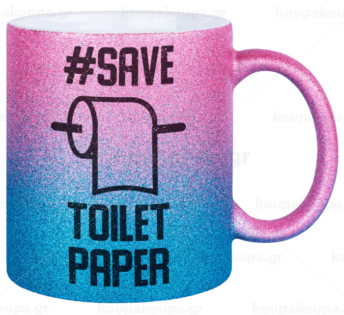 Save toilet Paper, Κούπα Χρυσή/Μπλε Glitter, κεραμική, 330ml