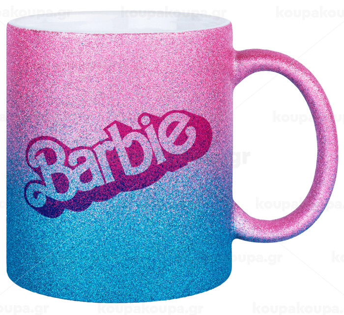 Barbie, Κούπα Χρυσή/Μπλε Glitter, κεραμική, 330ml