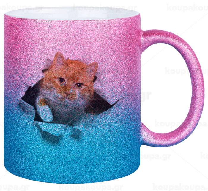 Cat cracked, Κούπα Χρυσή/Μπλε Glitter, κεραμική, 330ml