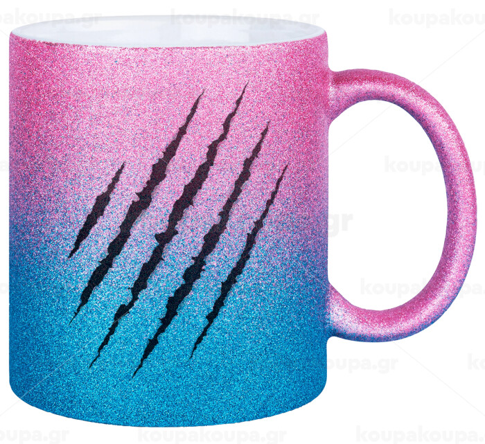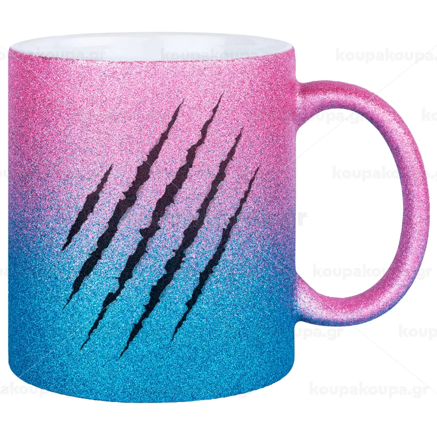 Claw scratch, Κούπα Χρυσή/Μπλε Glitter, κεραμική, 330ml