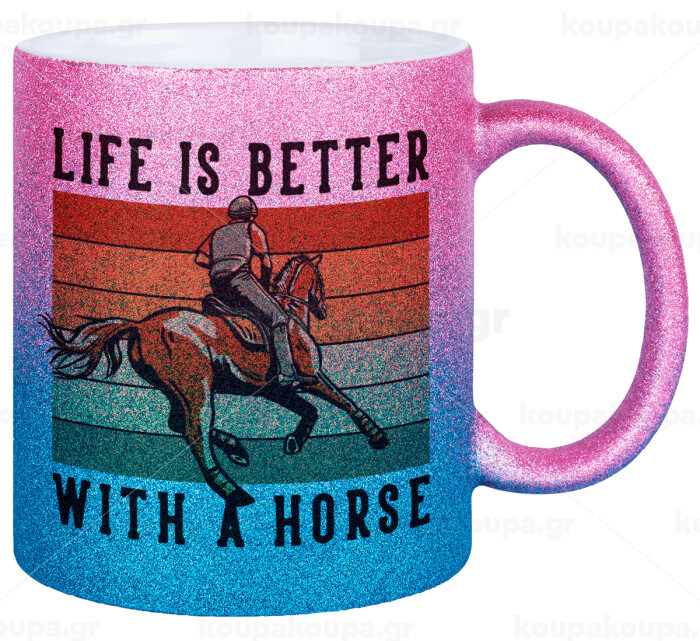 Life is Better with a Horse, Κούπα Χρυσή/Μπλε Glitter, κεραμική, 330ml
