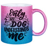 Only my DOG, understands me, Κούπα Χρυσή/Μπλε Glitter, κεραμική, 330ml