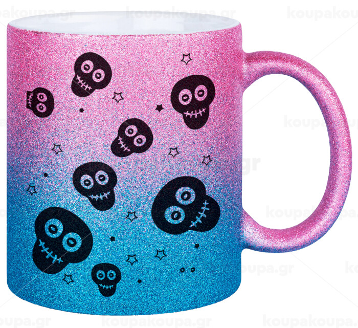 Skull avatar, Κούπα Χρυσή/Μπλε Glitter, κεραμική, 330ml