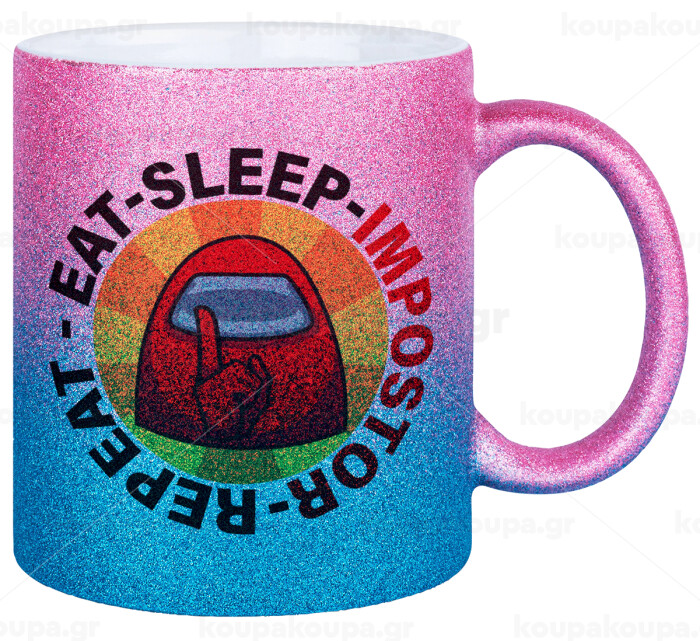 Among US Eat Sleep Repeat Impostor, Κούπα Χρυσή/Μπλε Glitter, κεραμική, 330ml