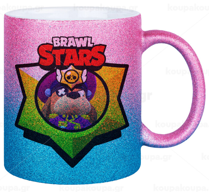 Brawl Stars Ruffs, Κούπα Χρυσή/Μπλε Glitter, κεραμική, 330ml