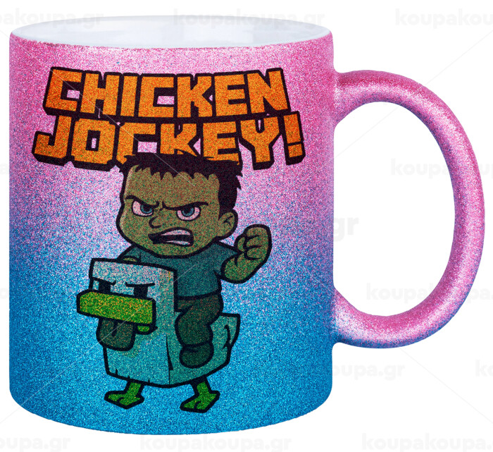 Chicken Jockey, Κούπα Χρυσή/Μπλε Glitter, κεραμική, 330ml