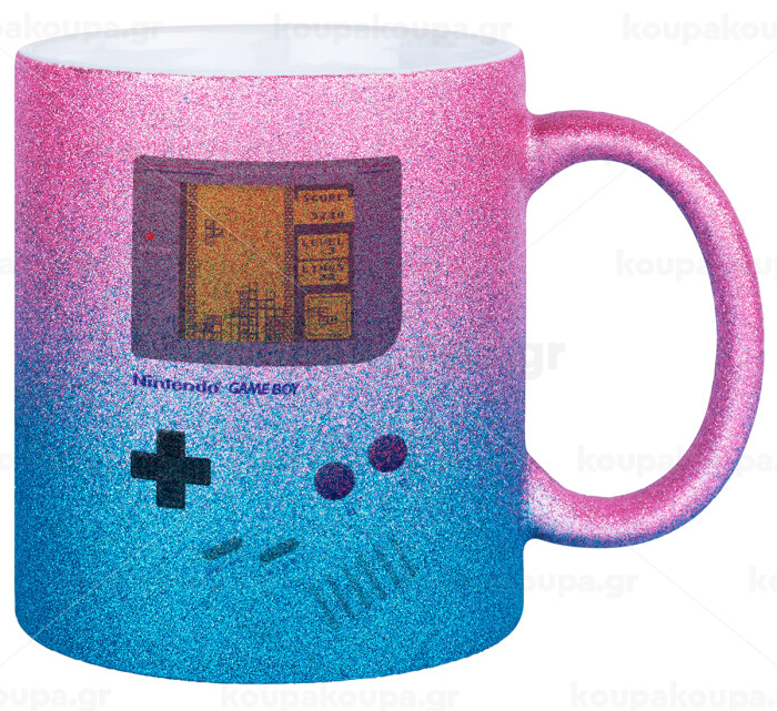 Gameboy, Κούπα Χρυσή/Μπλε Glitter, κεραμική, 330ml