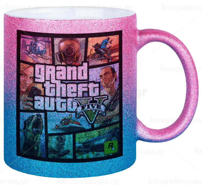 GTA V, Κούπα Χρυσή/Μπλε Glitter, κεραμική, 330ml