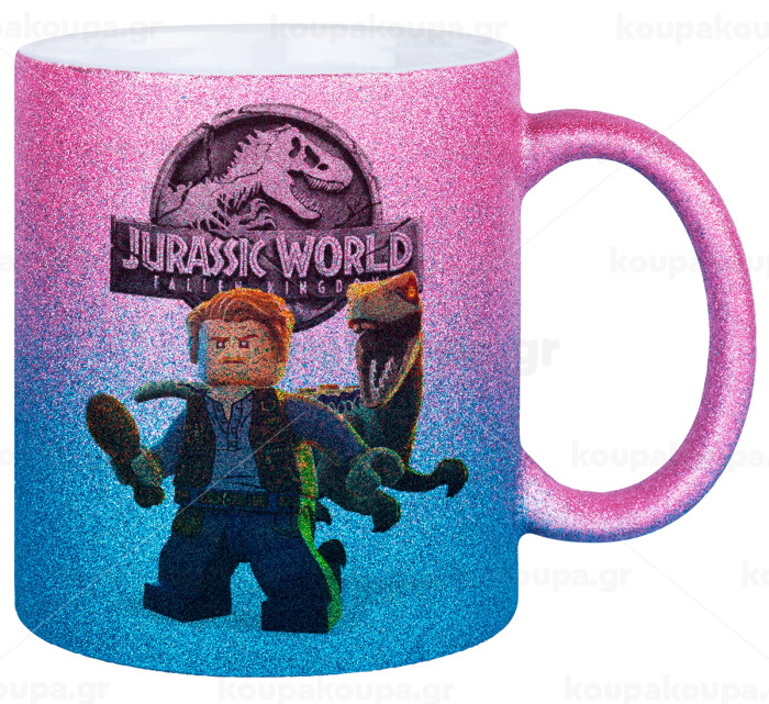 Jurassic world, Κούπα Χρυσή/Μπλε Glitter, κεραμική, 330ml