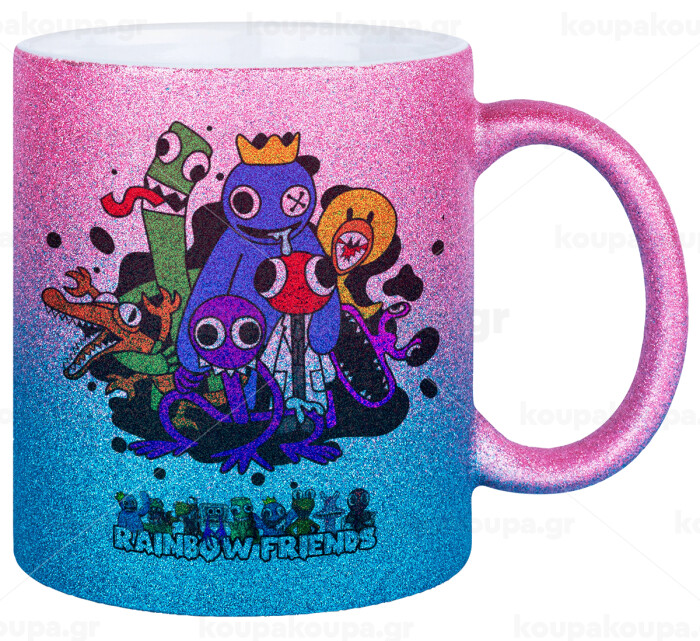 Rainbow friends, Κούπα Χρυσή/Μπλε Glitter, κεραμική, 330ml