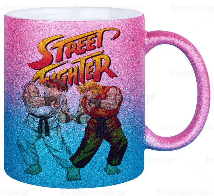 Street fighter, Κούπα Χρυσή/Μπλε Glitter, κεραμική, 330ml