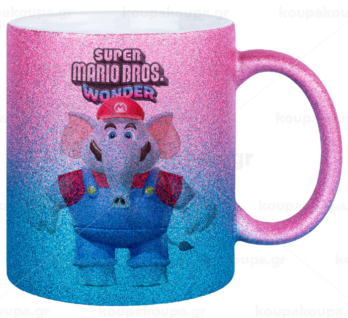 Super mario wonder, Κούπα Χρυσή/Μπλε Glitter, κεραμική, 330ml