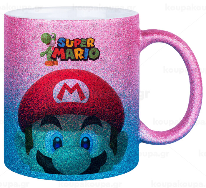 Super mario, Κούπα Χρυσή/Μπλε Glitter, κεραμική, 330ml