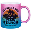 You need a ride to the train station, Κούπα Χρυσή/Μπλε Glitter, κεραμική, 330ml