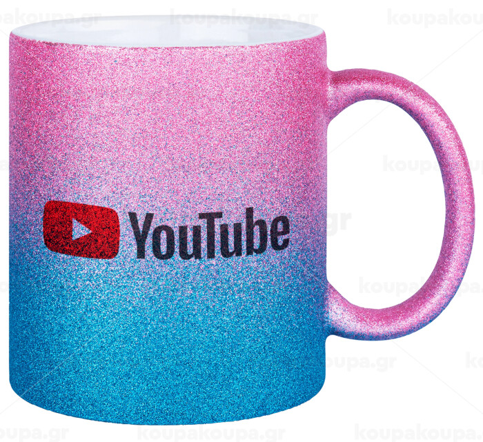 Youtube, Κούπα Χρυσή/Μπλε Glitter, κεραμική, 330ml