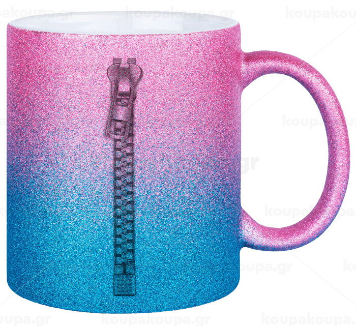 Zipper, Κούπα Χρυσή/Μπλε Glitter, κεραμική, 330ml