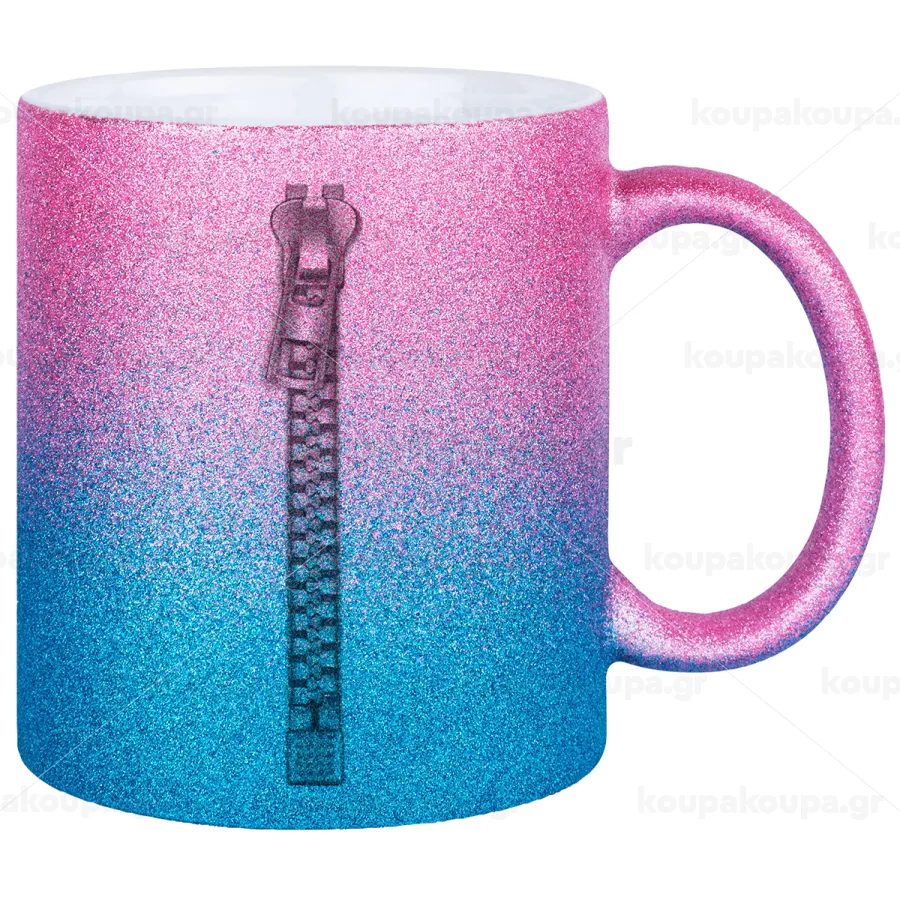 Zipper, Κούπα Χρυσή/Μπλε Glitter, κεραμική, 330ml