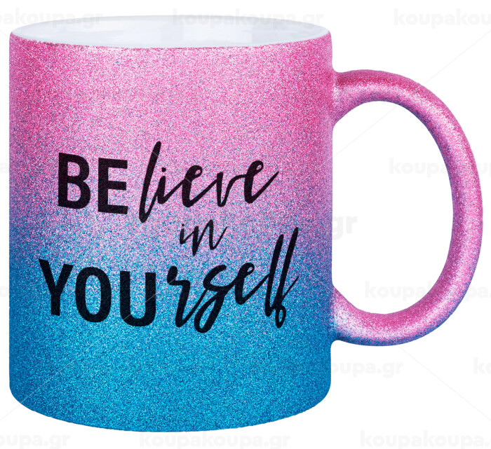 Believe in your self, Κούπα Χρυσή/Μπλε Glitter, κεραμική, 330ml