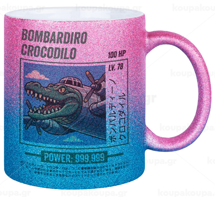 Bombardiro Crocodilo, Κούπα Χρυσή/Μπλε Glitter, κεραμική, 330ml