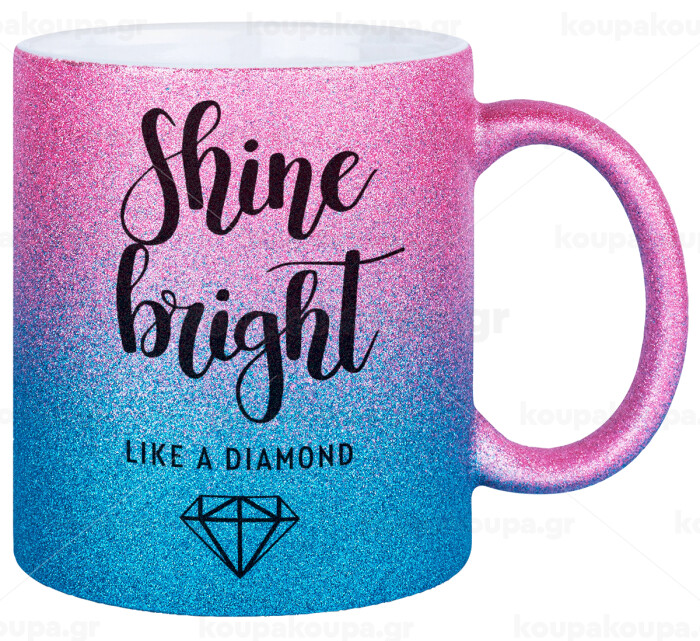 Bright, Shine like a Diamond, Κούπα Χρυσή/Μπλε Glitter, κεραμική, 330ml