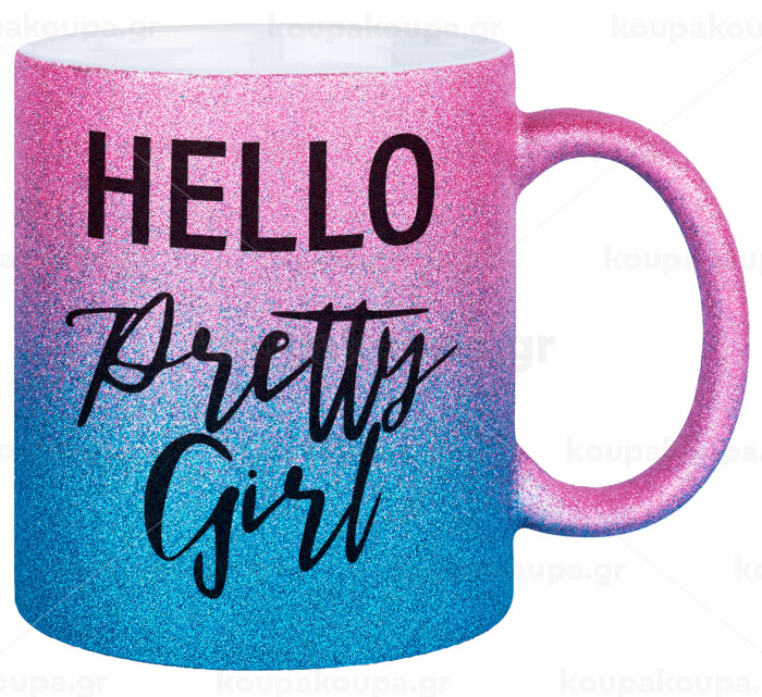 Hello pretty girl, Κούπα Χρυσή/Μπλε Glitter, κεραμική, 330ml