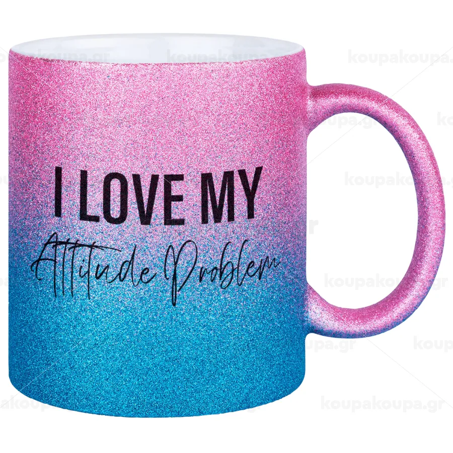 I love my attitude problem, Κούπα Χρυσή/Μπλε Glitter, κεραμική, 330ml