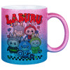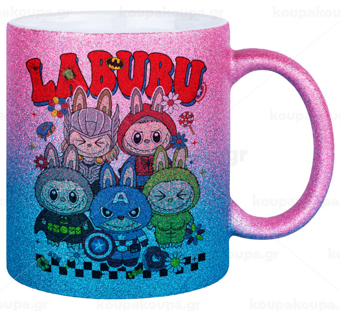 Labubu superheroes, Κούπα Χρυσή/Μπλε Glitter, κεραμική, 330ml