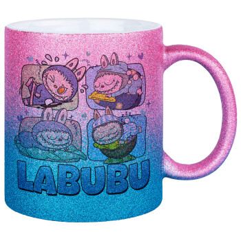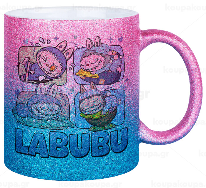 Labubu, Κούπα Χρυσή/Μπλε Glitter, κεραμική, 330ml