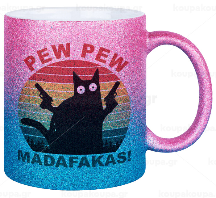 PEW PEW madafakas, Κούπα Χρυσή/Μπλε Glitter, κεραμική, 330ml
