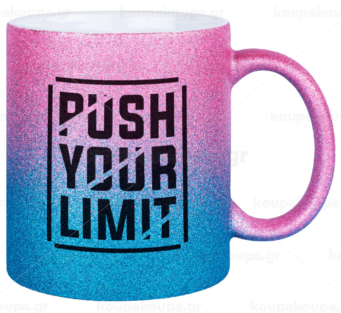 Push your limit, Κούπα Χρυσή/Μπλε Glitter, κεραμική, 330ml