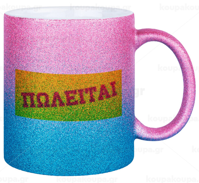 ΠΩΛΕΙΤΑΙ, Κούπα Χρυσή/Μπλε Glitter, κεραμική, 330ml