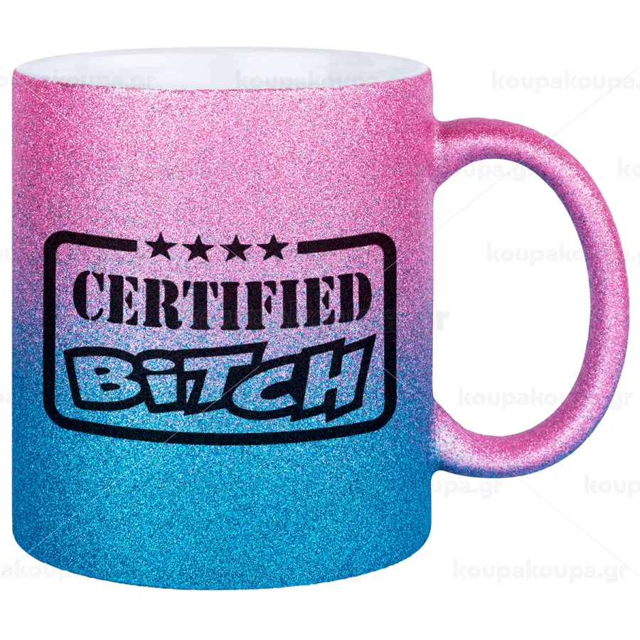 Certified Bitch, Κούπα Χρυσή/Μπλε Glitter, κεραμική, 330ml