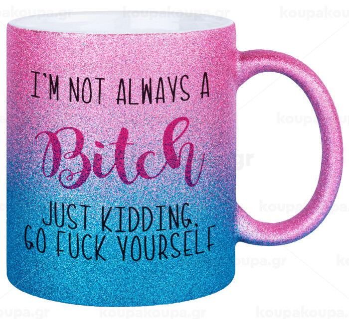 I'm not always a bitch, just kidding go f..k yourself , Κούπα Χρυσή/Μπλε Glitter, κεραμική, 330ml