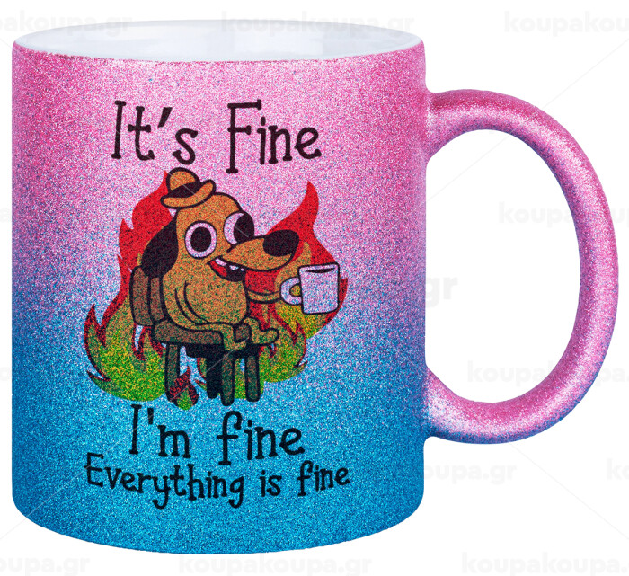 It's Fine I'm Fine Everything Is Fine, Κούπα Χρυσή/Μπλε Glitter, κεραμική, 330ml