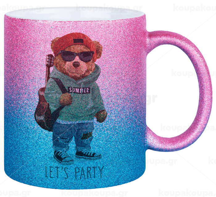 Let's Party Bear, Κούπα Χρυσή/Μπλε Glitter, κεραμική, 330ml