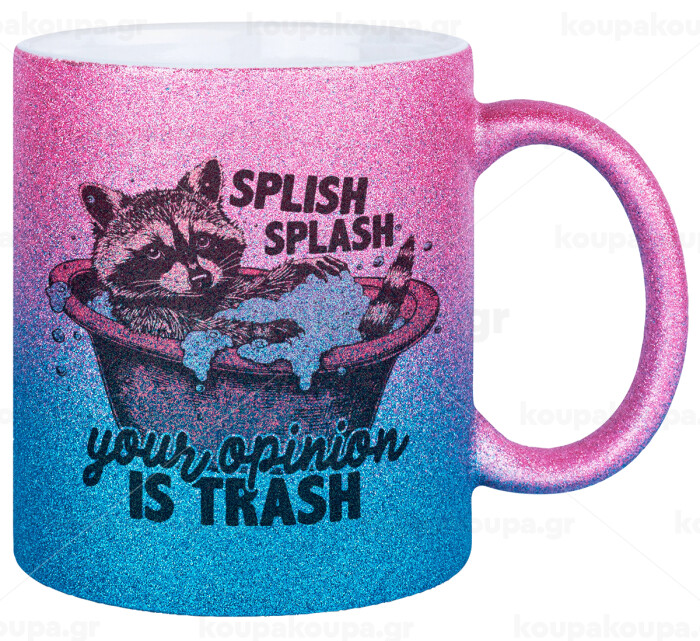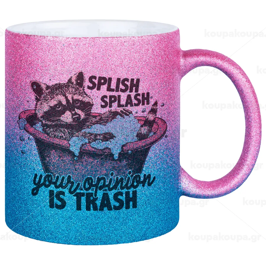 Splish splash your opinion is trash, Κούπα Χρυσή/Μπλε Glitter, κεραμική, 330ml