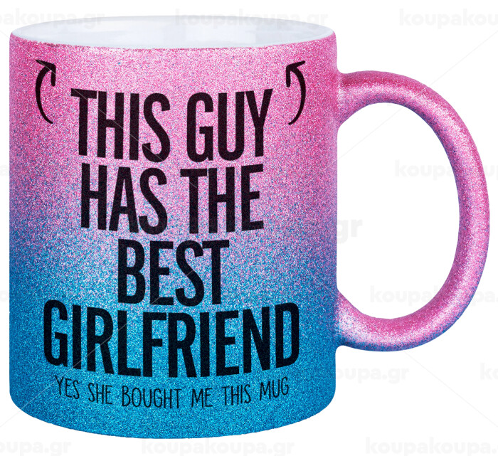 This guy has the best Girlfriend, Κούπα Χρυσή/Μπλε Glitter, κεραμική, 330ml