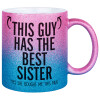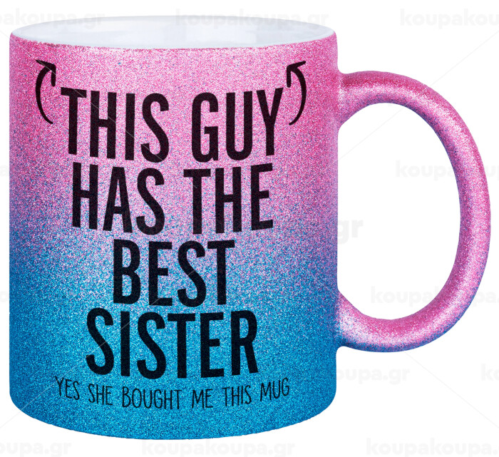 This guy has the best Sister, Κούπα Χρυσή/Μπλε Glitter, κεραμική, 330ml